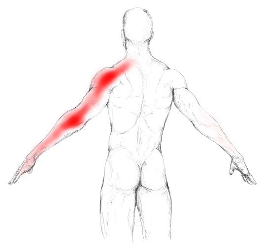 “Une névralgie est une douleur (algie) survenant dans le territoire d’un nerf sensitif (nevr), souvent d’un seul côté. La névralgie cervicobrachiale, ou « sciatique du bras », est une maladie douloureuse due à l’atteinte d’une des racines nerveuses destinées au membre supérieur. Le patient se plaint de douleurs dans le cou et dans le bras. La partie supérieure de la douleur peut manquer. Des paresthésies (fourmillements) sont souvent associées. Des irradiations de la douleur vers la poitrine sont fréquentes.” Doctissimo.fr
